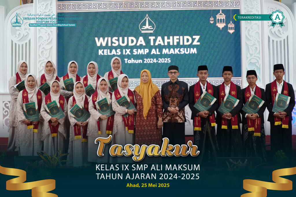 Humas — Acara Tasyakur Kelulusan Santri Kelas 9 SMP Ali Maksum berlangsung penuh haru dan suka cita. Bertempat di Main Hall Hotel Al-Ashri inn pada Ahad, 25 Mei 2025. Kegiatan ini dihadiri oleh para santri kelas 9, guru, pembimbing, wali santri, serta para Dzuriyyah Krapyak Kemeriahan acara dimulai dengan pembukaan hadroh dan pembacaan Asmaul Husna, […]
